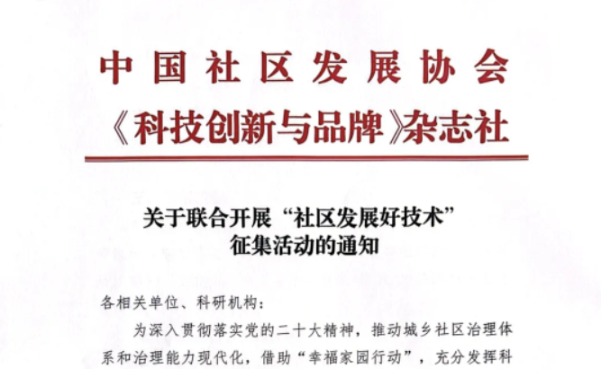 為深入貫徹落實(shí)黨的二十大精神,推動(dòng)城鄉(xiāng)社區(qū)治理體系和治理能力現(xiàn)代化,借助“幸福家園行動(dòng)”,充分發(fā)揮科技創(chuàng)新在社區(qū)高質(zhì)量發(fā)展中的引領(lǐng)作用,中國(guó)社區(qū)發(fā)展協(xié)會(huì)聯(lián)合《科技創(chuàng)新與品牌》雜志社,面向......